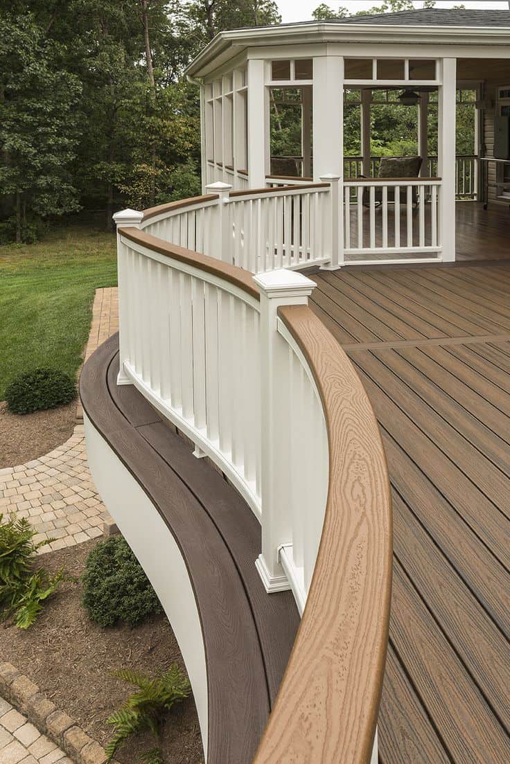 Trex decking in Spiced Rum. Trex Transcend Railing.